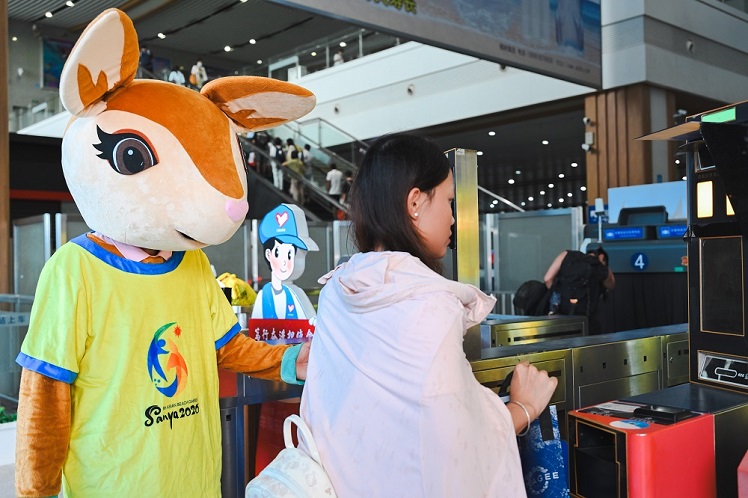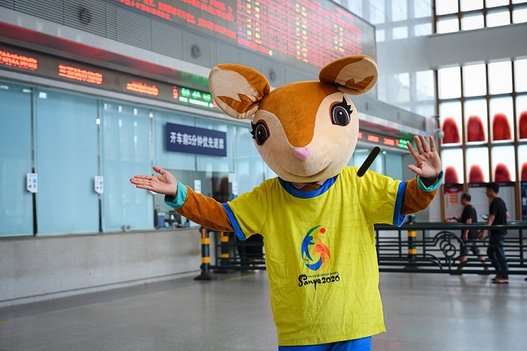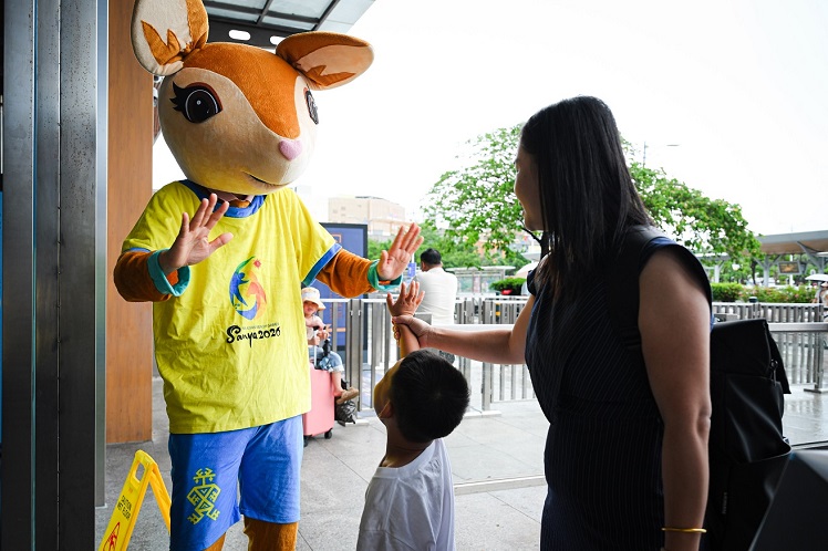 2026年第六届亚洲沙滩运动会(以下简称:三亚亚沙会)吉祥物“亚亚”也惊喜亮相动车站,瞬间成为全场焦点。活泼可爱的“亚亚”与往来旅客亲切互动,吸引了众多大小朋友驻足拍照,现场欢声笑语不断。“亚亚”的到来,不仅为繁忙的旅途增添了节日的欢乐与温情,也让四海宾朋在这个特别的中秋节,提前感受到了三亚亚沙会的活力与魅力。