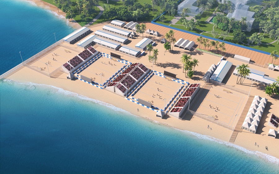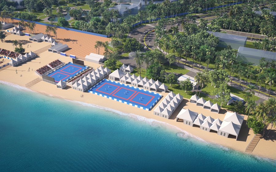 沙滩手球竞赛项目效果图。(场馆搭建以实际为准)